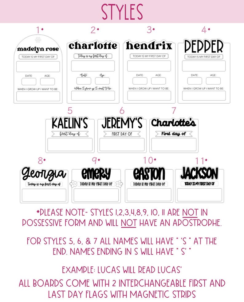 PLEASE NOTE FOR STYLES 5-8 ALL NAMES ARE IN POSSESIVE FORM