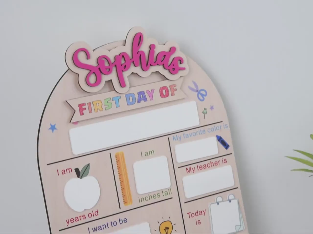 Celebrate your child’s academic milestones with our interchangeable First & Last Day of School Sign—a beautifully crafted keepsake designed to grow with your family! Simply switch between the "First Day of" and "Last Day of" inserts and customize the name panel for each child. Perfect for creating adorable yearly comparison photos!