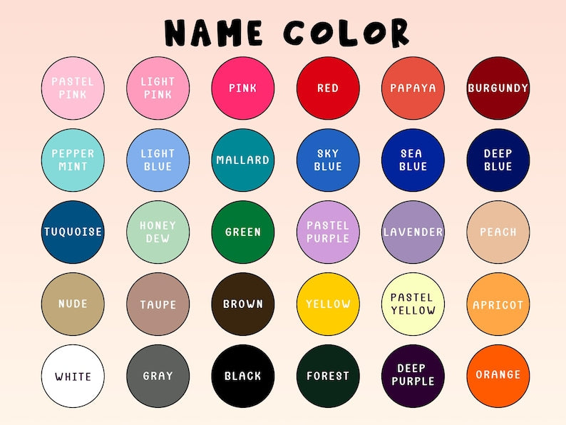 Personalization: Please enter your name and name color here (default is Papaya).