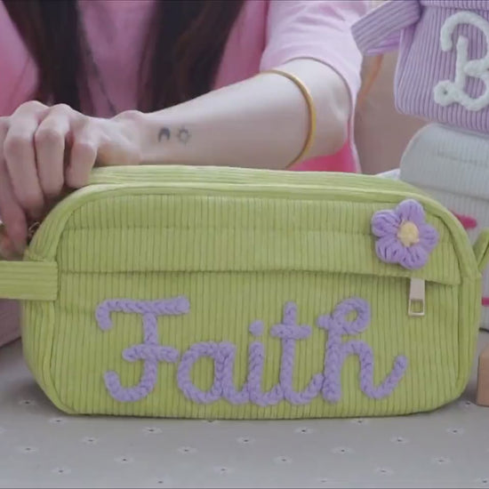 Make school sparkle! A cozy corduroy pencil pouch customized with your child’s name in vibrant yarn. Perfect for tiny hands and big imaginations.