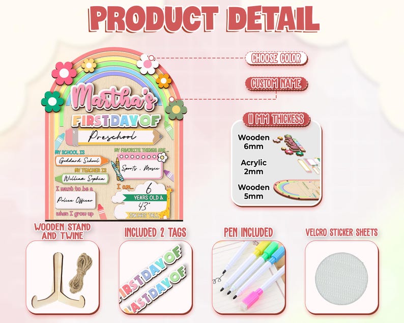 🎓 The "First Day of School Sign" is not just a beautiful decoration for your child's first photo shoot, but also a great way to document and share special memories during this precious time.