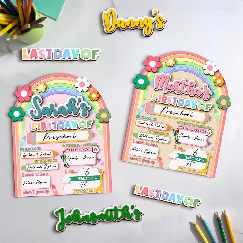Personalized First Day School Sign Preschool Kindergarten Back to School Reusable Last Day Sign