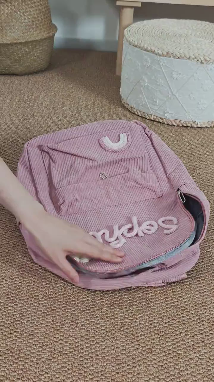 -- With dimensions of 15" x 11" x 5", our sturdy corduroy backpacks are spacious and comfy for all-day wear.