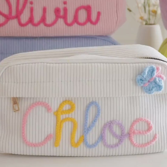 Make back-to-school magical with a one-of-a-kind corduroy pouch that turns ordinary supplies into treasures. Each case features a hand-stitched yarn name and optional floral charm – perfect for girls who love unique, smile-worthy accessories!