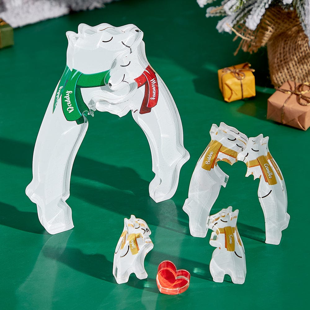 Each bear puzzle piece can be engraved with a family member's name. Each uniquely shaped piece of these personalized wooden puzzle bears brings a special family member and their love to life, making them the perfect surprise gift for any celebration.